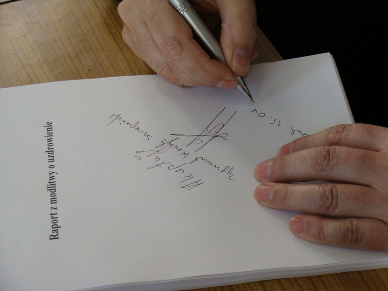 Galeria poniżej prezentuje moment zakończenia prac nad „Raportem z modlitwy o uzdrowienie” oraz osoby, które pomocą organizacyjną i materialną przyczyniły się do jego powstania. Z tego kwietniowego spotkania w 2009 roku w Czersku, maszynopis pojechał prosto do drukarni Jezuitów w Lodzi.